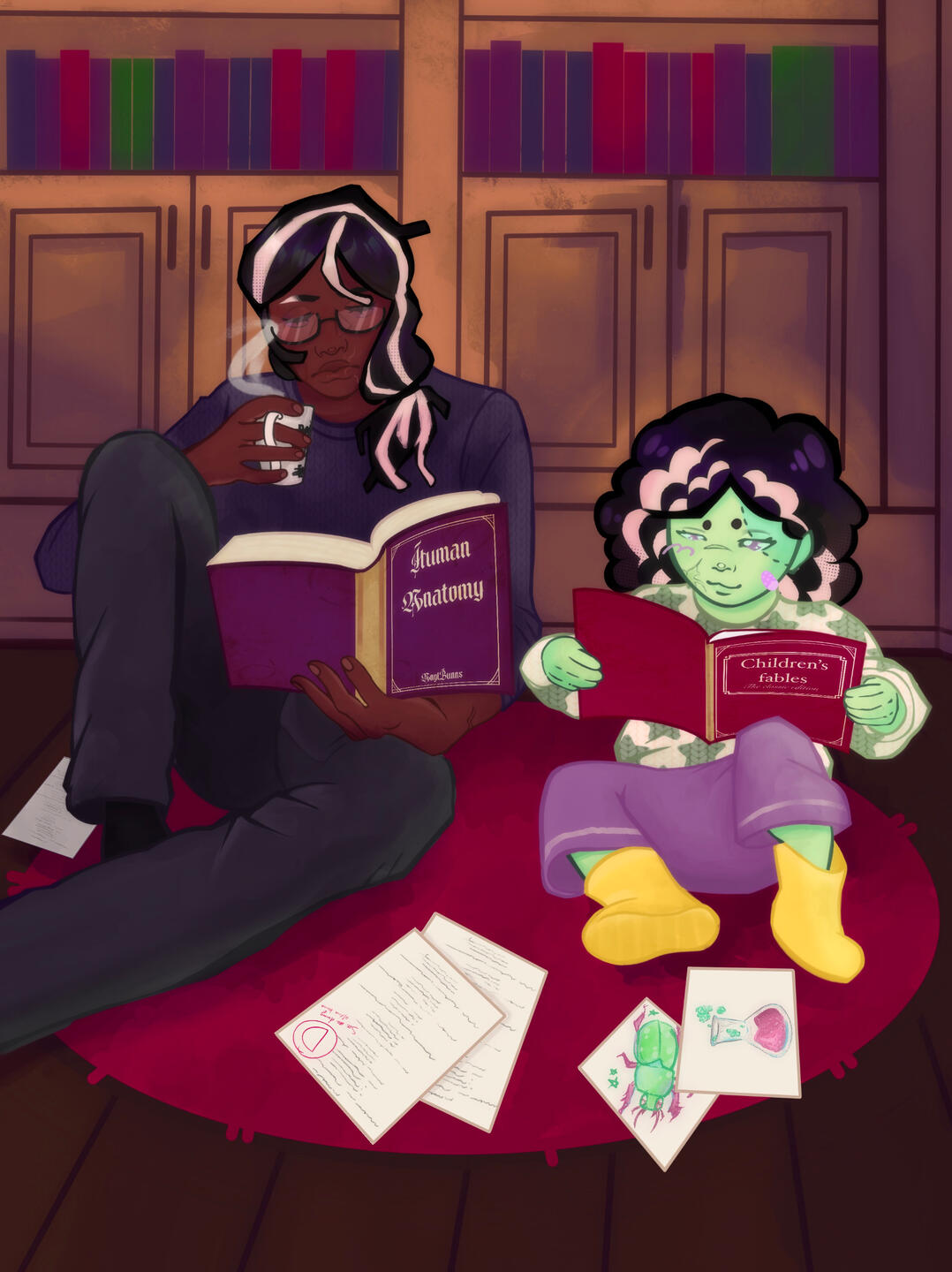 Hello! My name is Bunnie Slappy, and I'm an Afro-Indigenous artist based in Minneapolis. I am currently studying for my BFA in Illustration, though in my artistic practice, I like to try lots of different things like sculpting, painting, sewing, and several other mediums! The main art I specialize in is colorful digital illustration, but I am always open to trying new mediums and techniques!